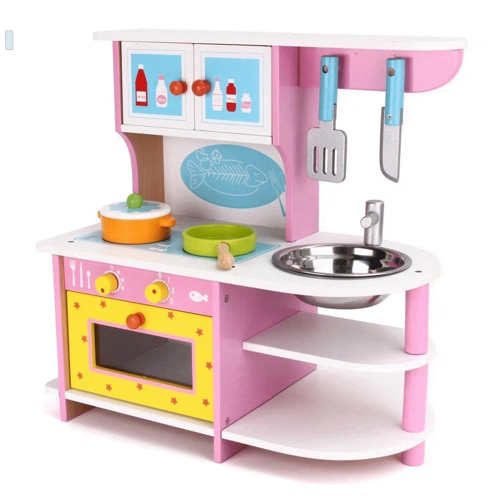 A compact option with massive play value, this pretend play wooden set sparks solo or shared storytelling that boosts confidence and communication. Wooden Kitchen Set