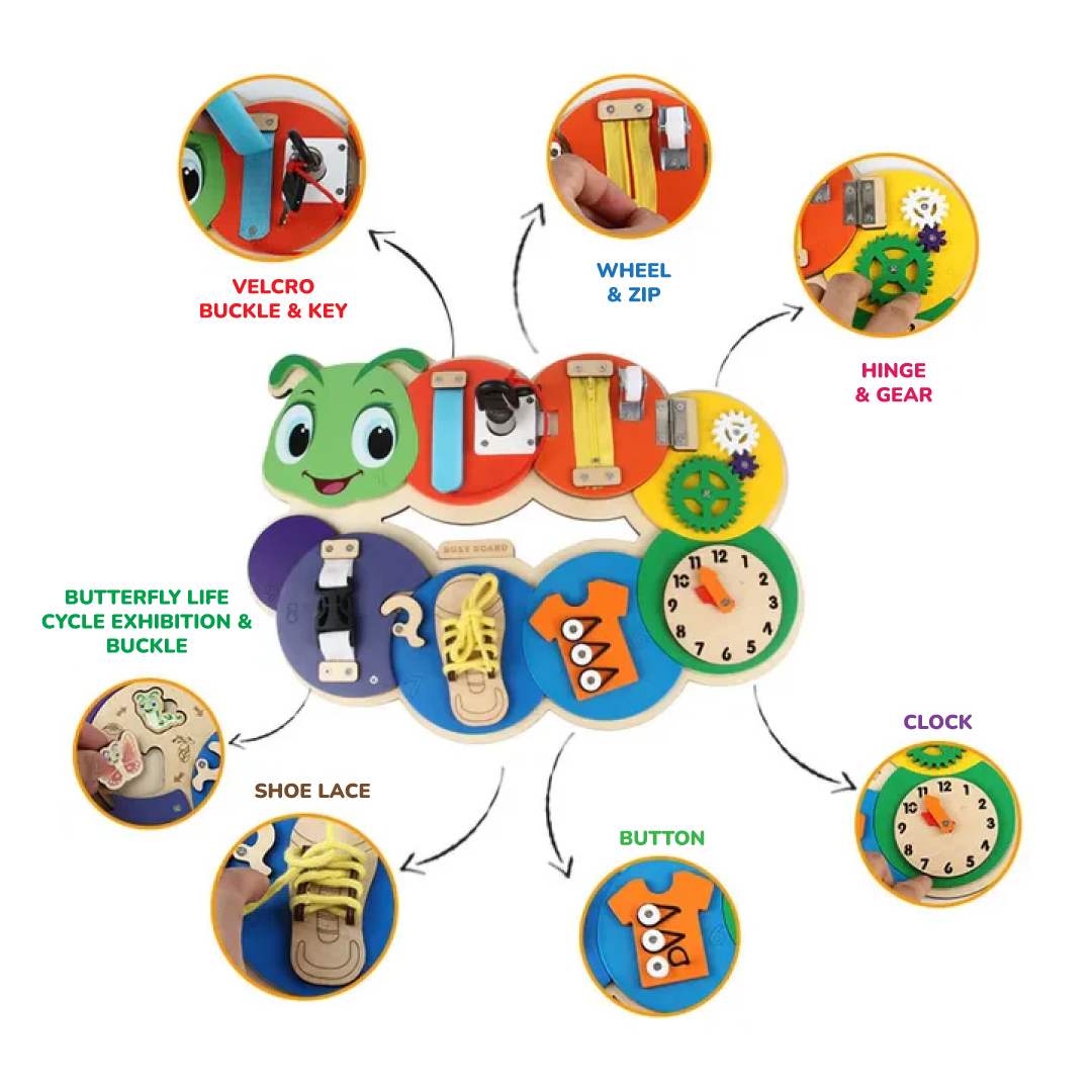 Invest in your child's future with the Montessori Caterpillar Design Busy Board—where education meets play! Help your little ones explore and learn while developing crucial skills that will benefit them for a lifetime. Order yours today and watch them thrive!