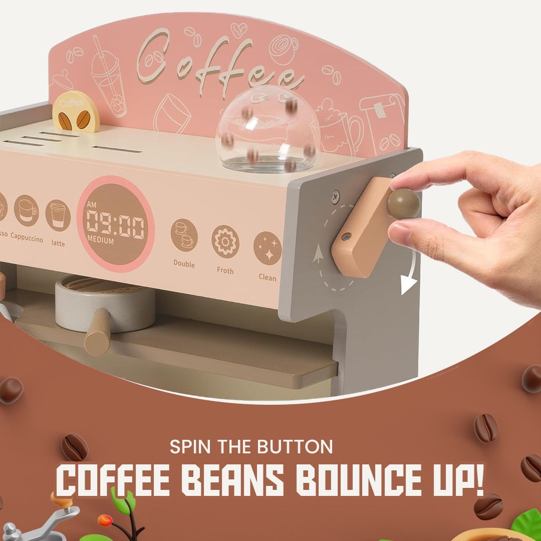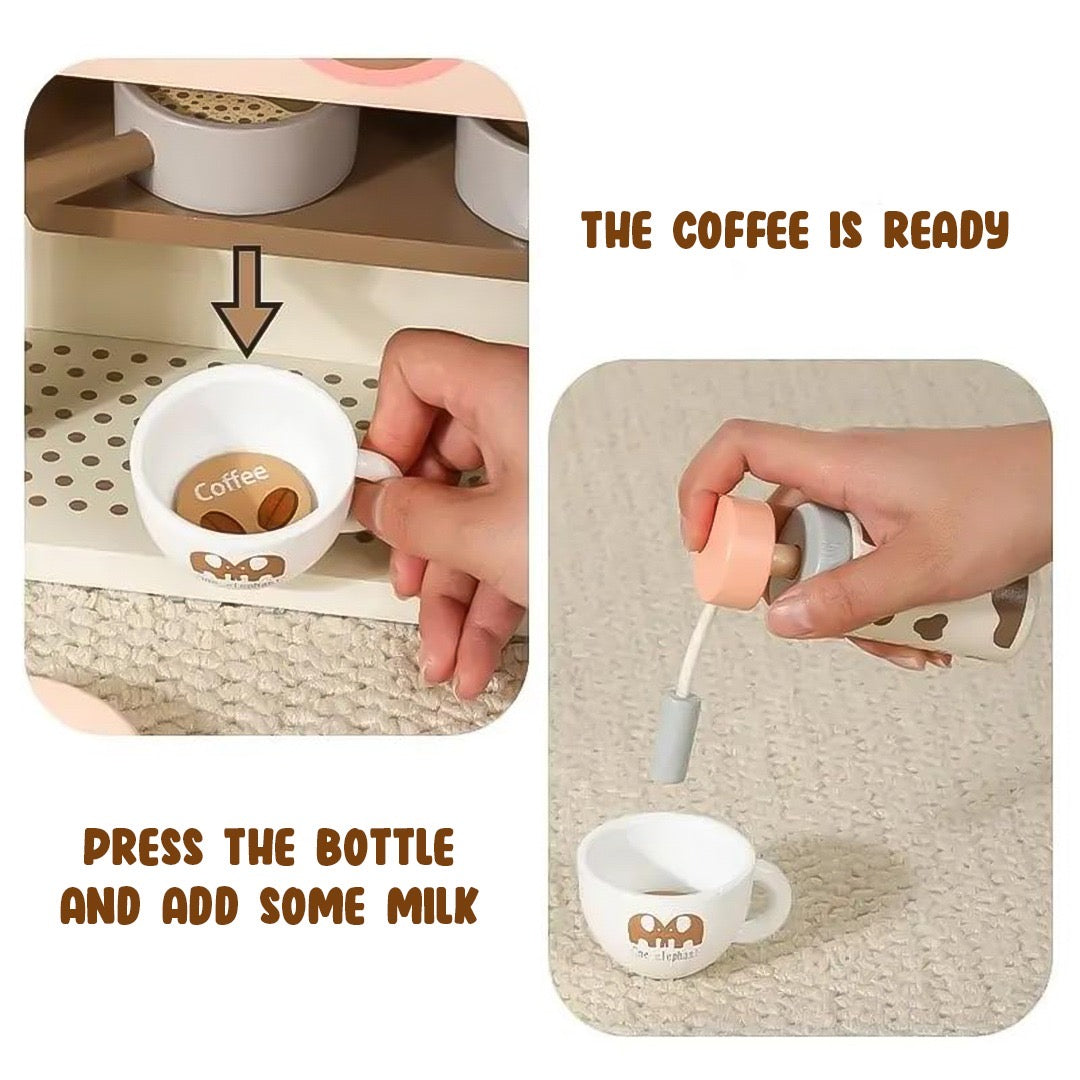 JOUETS BY EDUSPARK Wooden Coffee Machine Toy – Delightful Pretend Play Set with Accessories for Kids