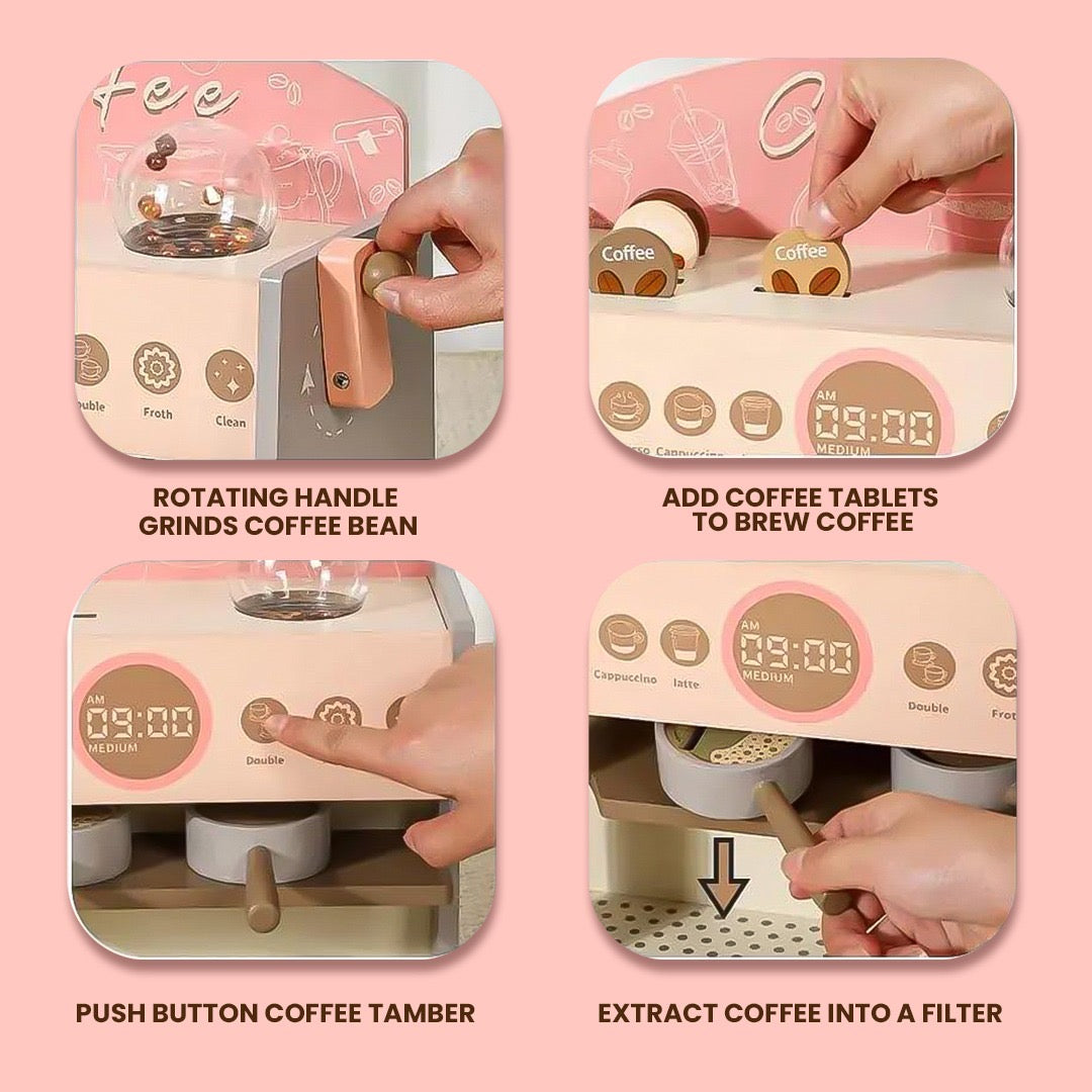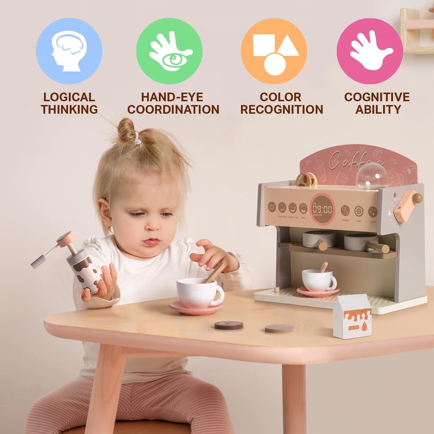 Wooden Coffee Machine Toy Set with Accessories- Pretend Play Toys for Kids- Kitchen Toys for Girls & Boys, Toy Coffee Maker,Pretend Play Coffee Maker,