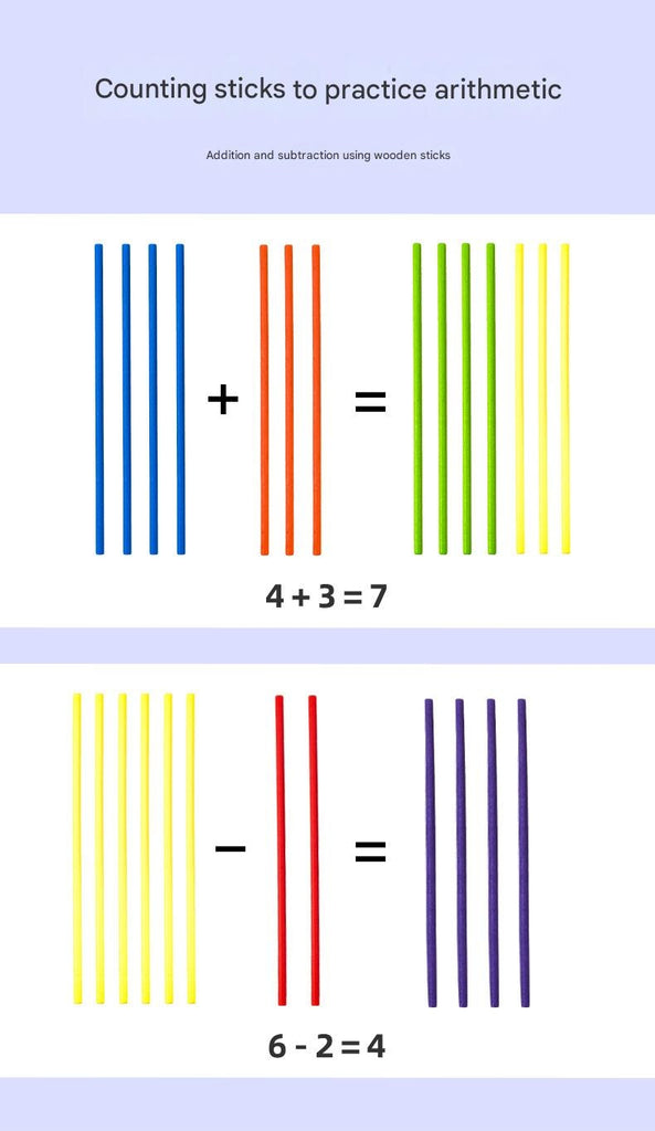Colour-recognition & cognitive association – The array of brightly coloured sticks fosters alertness to colour, pattern, sequencing and simple strategy.