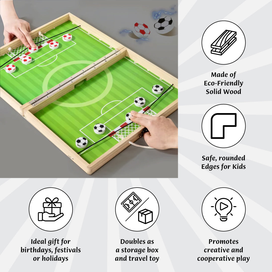- Mini Soccer Game: Flip the board and play a thrilling finger-flick soccer match! The smooth wooden field includes goals, pucks, and elastic bands for fast-paced play that improves focus and hand-eye coordination.