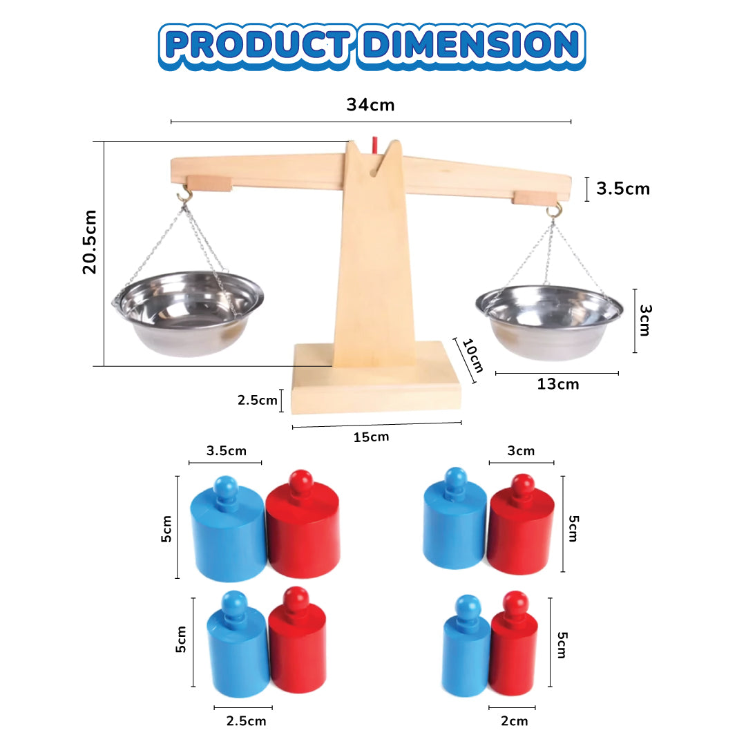 Introduce your child to the fascinating world of measurements and weights with our Montessori Balance Weighing Scale. This beautifully crafted wooden toy is designed to engage young learners in hands-on exploration and discovery. Watch as your child discovers the principles of balance and weight by experimenting with different knobs on the scale. This educational toy not only promotes mathematical thinking but also enhances fine motor skills and coordination. Perfect for early childhood education, this Montessori-inspired scale provides a fun and interactive way for children to learn fundamental concepts while engaging their curiosity and imagination.