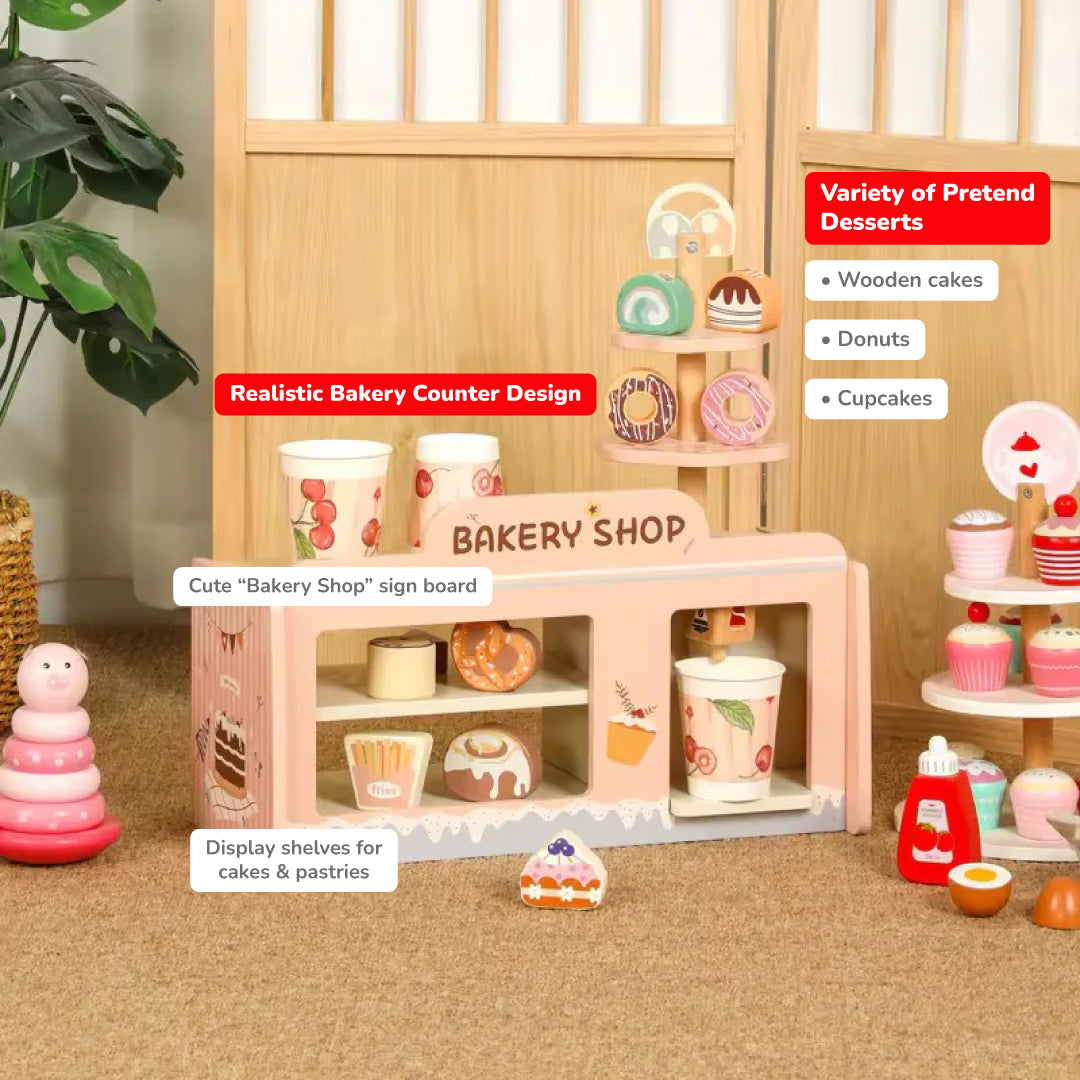 Whether your child is hosting a tea party, serving customers, or creating their own dessert stories, this bakery set turns everyday play into a meaningful learning adventure.