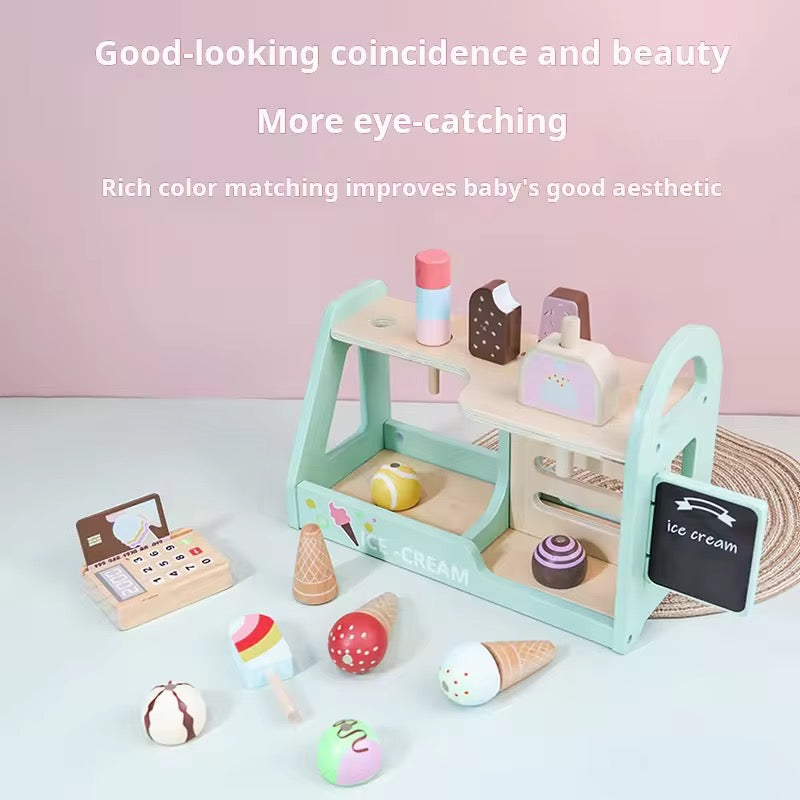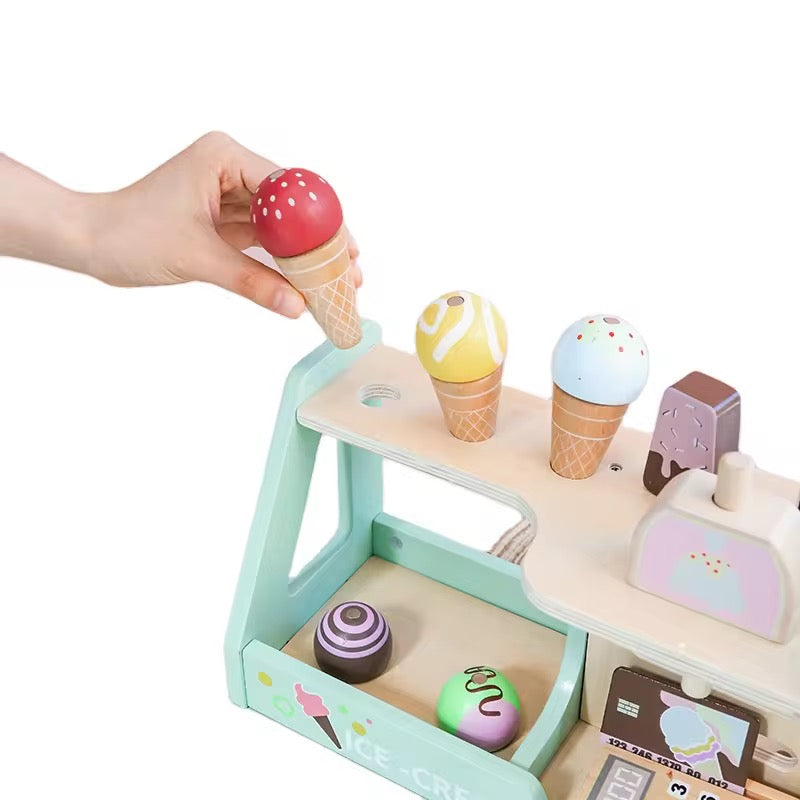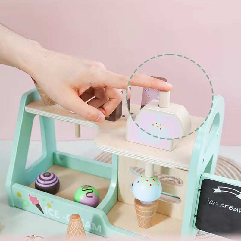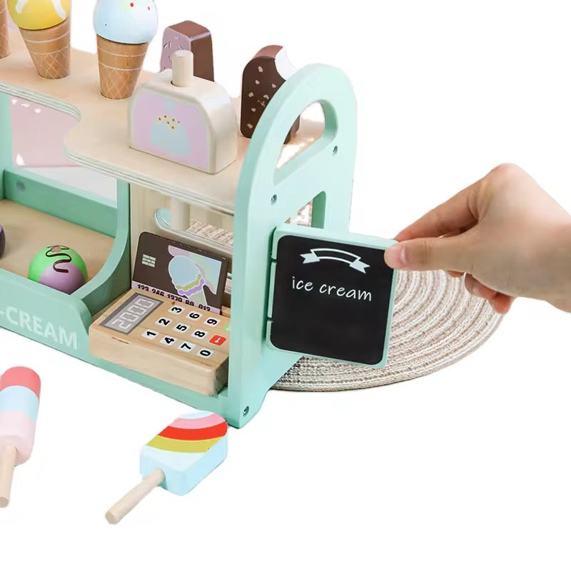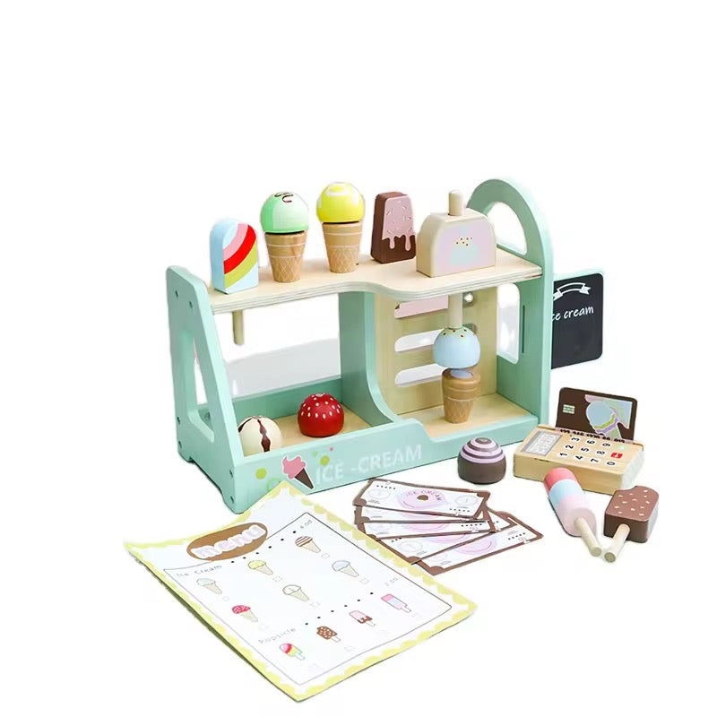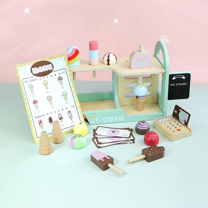 Wooden Ice Cream Shop Playset for Kids – Pretend Play Dessert Counter