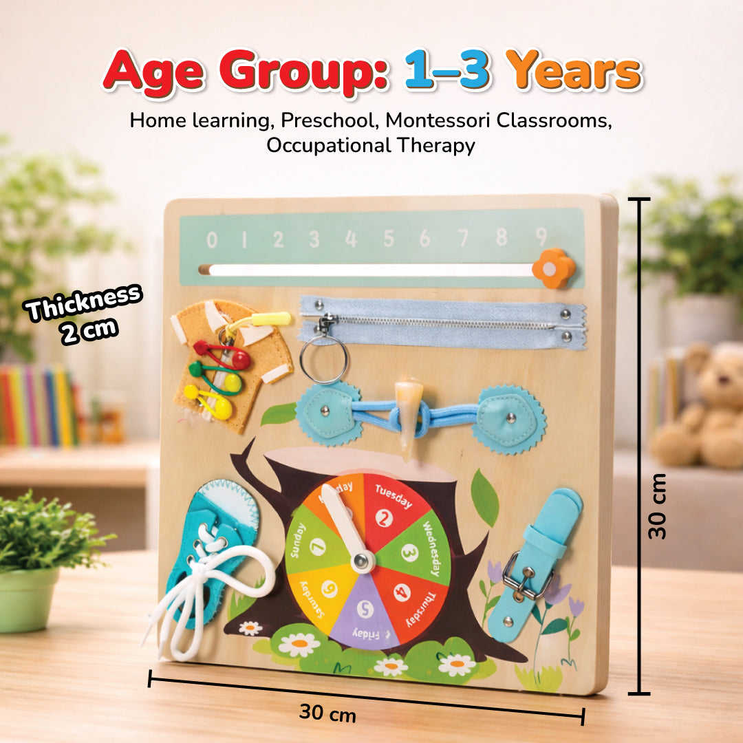 Perfect for homes, preschools, therapy rooms, and travel learning, this compact 30×30 cm busy board is your child’s first step toward practical life mastery.