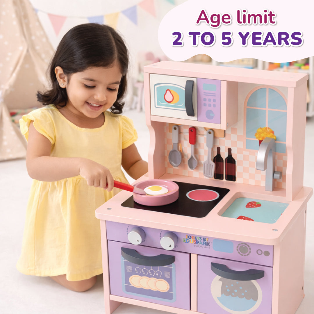 Introduce your child to the joy of pretend cooking with the Eduspark Mini Chef Wooden Kitchen, a compact and budget-friendly play kitchen designed for early learners. Perfect for small homes, play corners, and first-time pretend play setups, this mini kitchen gives children a complete cooking experience in a smaller, easy-to-manage size.