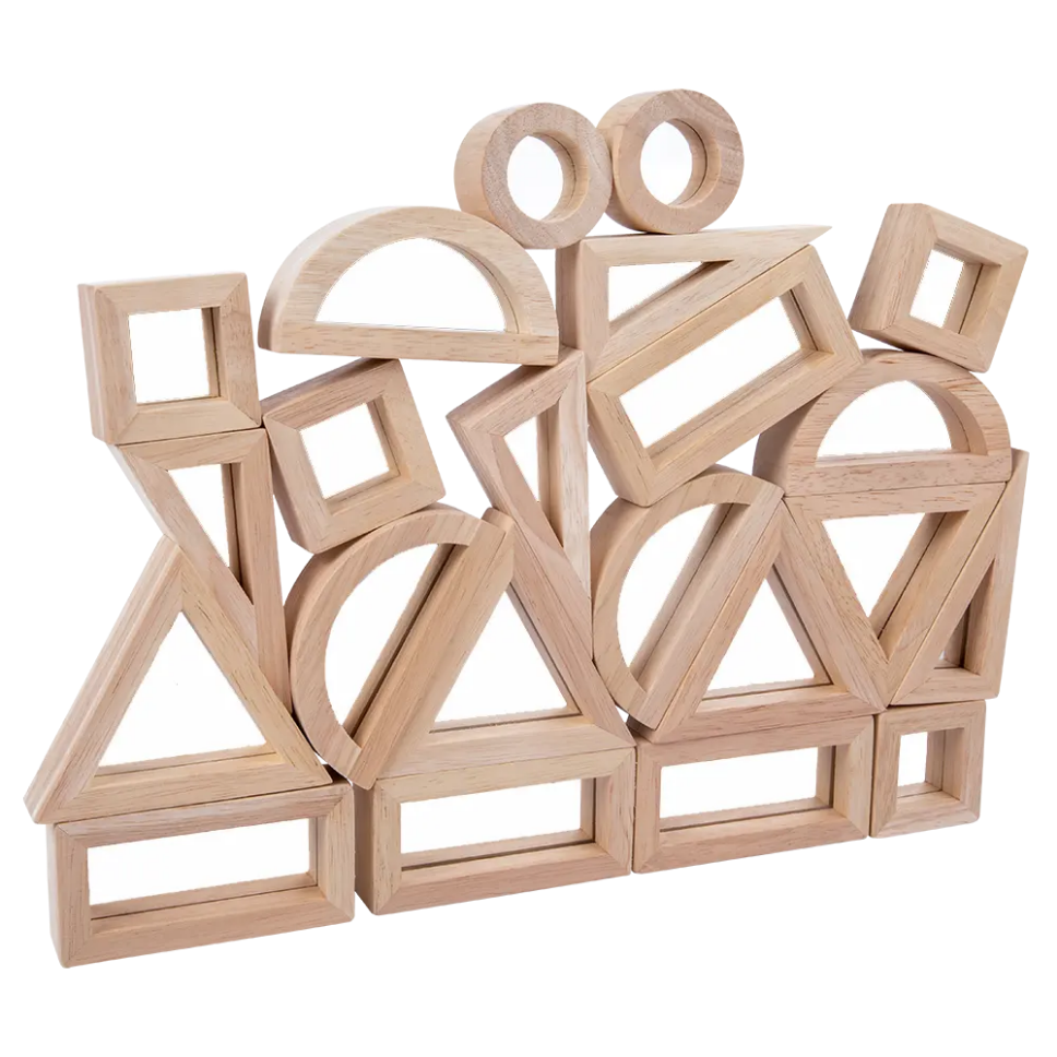 This set is inspired by Montessori and Reggio Emilia learning, where children are encouraged to explore the world through hands-on, sensory-rich play. As little ones stack, balance, and experiment, they learn about shapes, reflections, patterns, and spatial relationships — all while having fun.