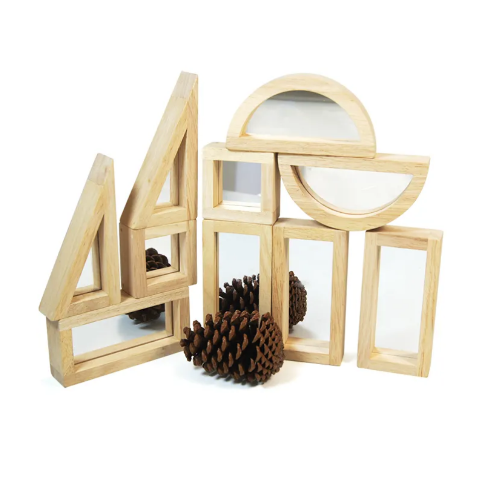 Montessori Wooden Mirror Sensory Blocks – 10 Piece Set