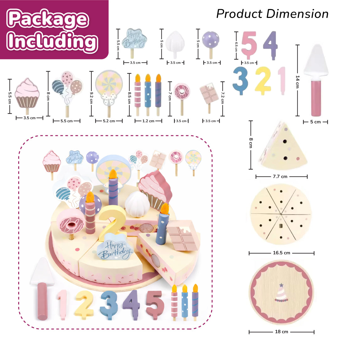 Whether your child is learning to count, practicing role play, or hosting their first pretend party, My Little Birthday Cake Wooden Play Set brings happiness, learning, and imagination together in one beautiful toy.