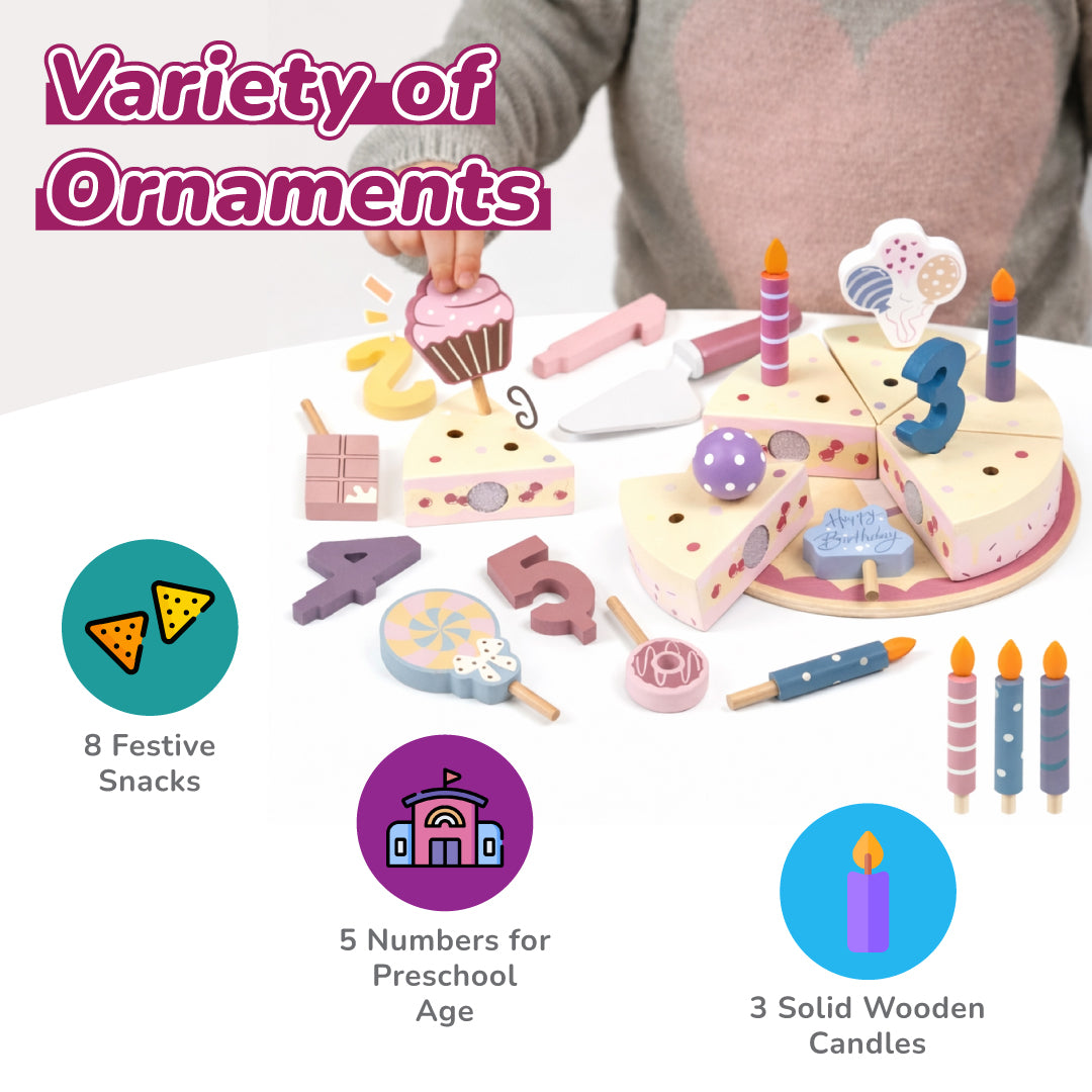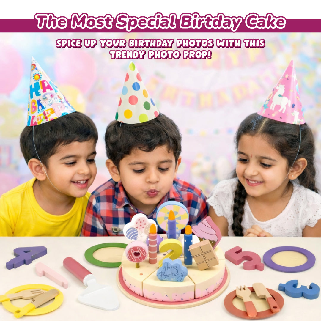 🎂 My Little Birthday Cake – Wooden Pretend Play Cake Set for Kids