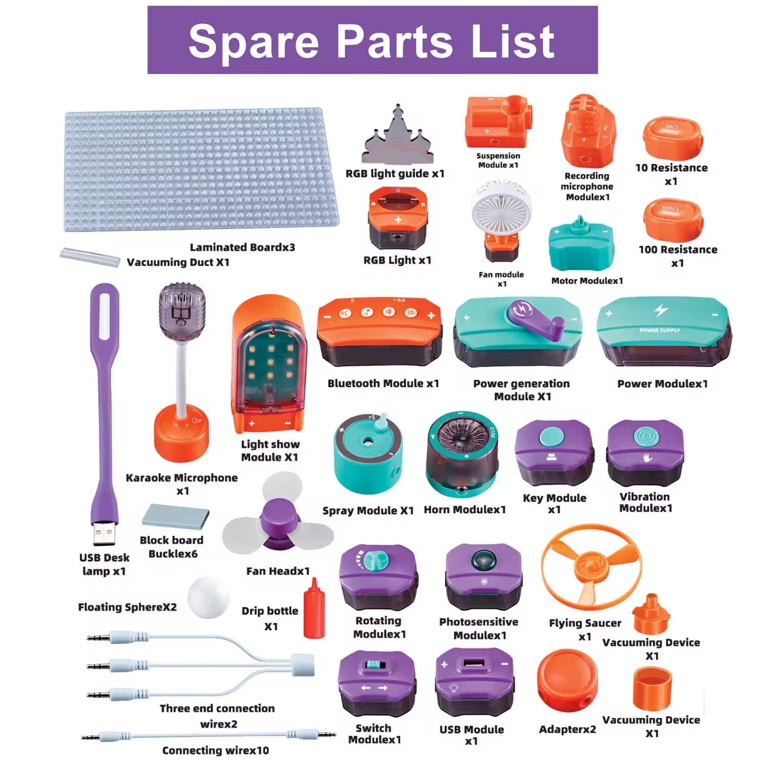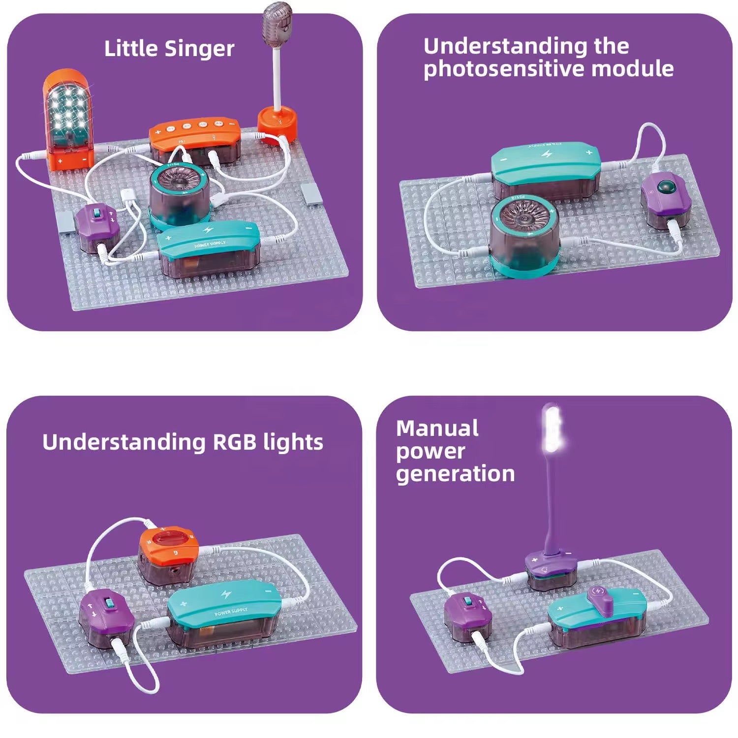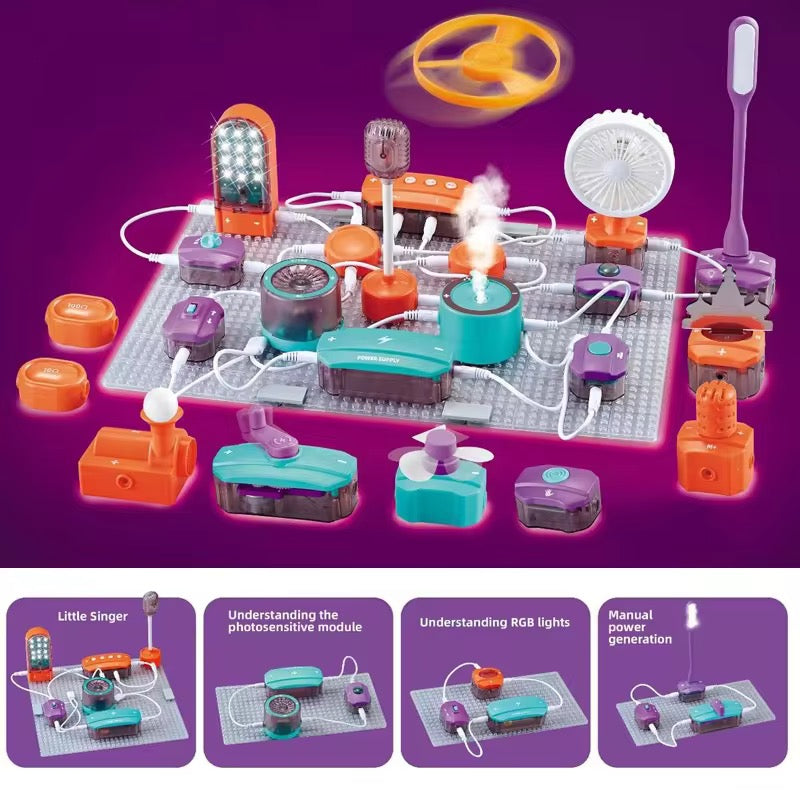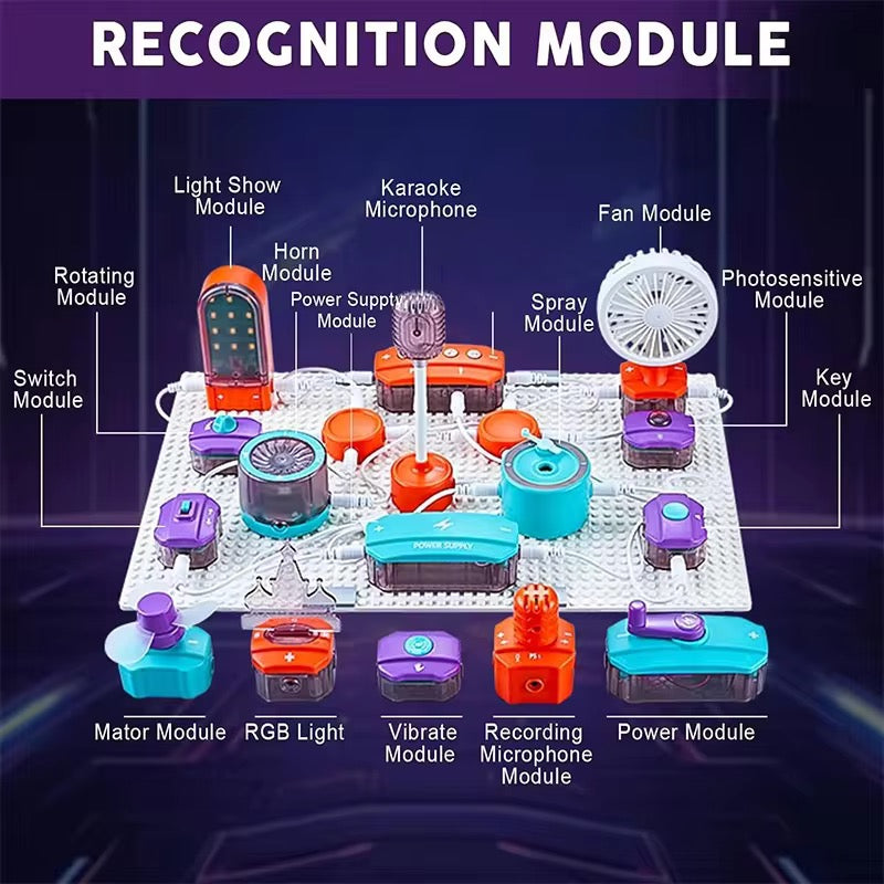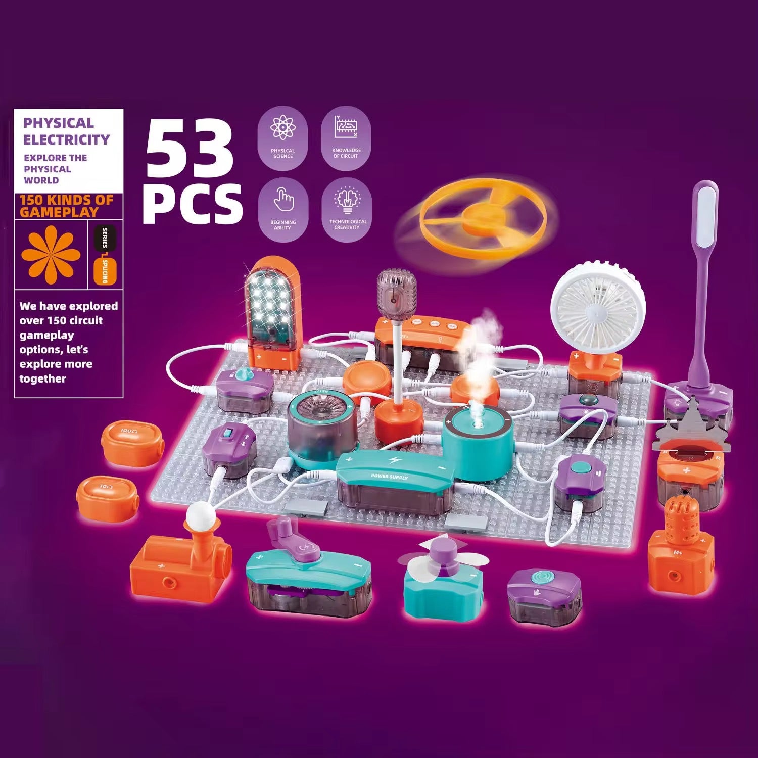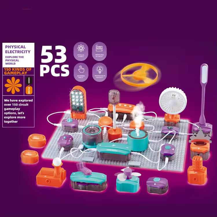 With 53 interactive components and over 150 possible experiments, children can create working electronic systems including lights, fans, sound modules, microphones, and motion modules. This educational toy transforms complex scientific concepts into fun, visual, and interactive play.
